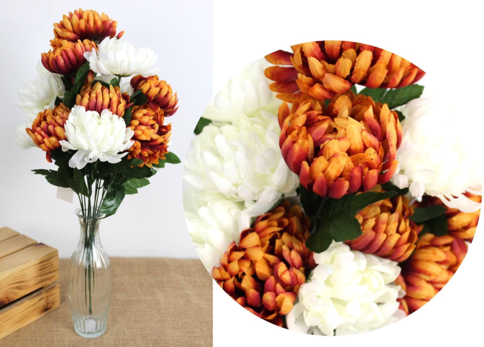 Hurt 7&7 Bukiet Sztucznych Chryzantem 50Cm 14 Łodyg Rudo Biały Gniewkowo
