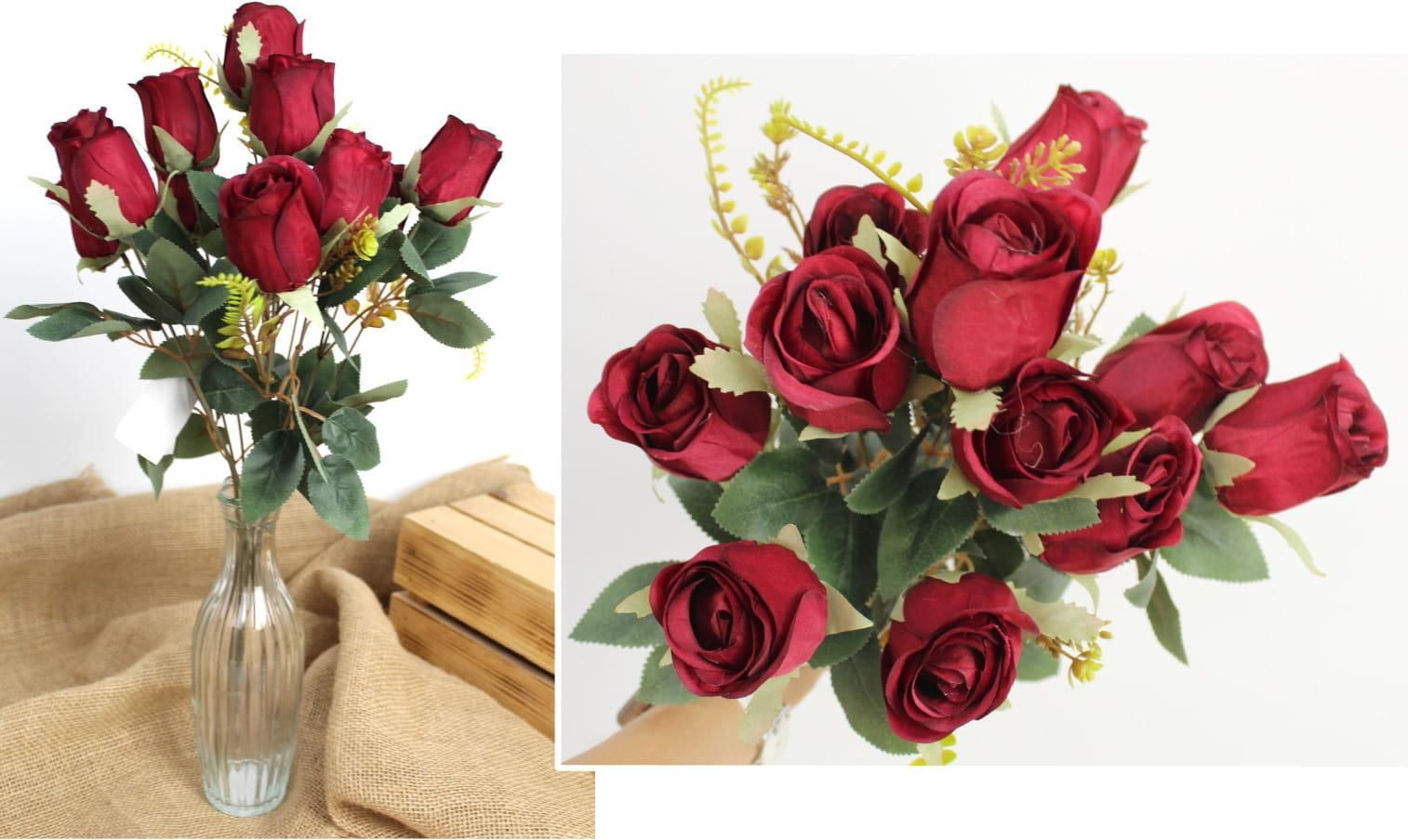 Hurt 7&7 Bukiet Sztucznych Róż 50Cm 11 Łodyg Nierozwinięte Czerwone Kwiaty Gniewkowo