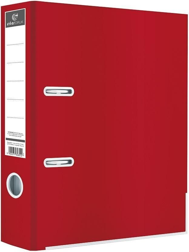 Segregator A4 75mm Bordowy Mat Interdruk – Wytrzymałość i Funkcjonalność w Klasycznym StyluSegregator Interdruk w formacie A4 to niezastąpiony produkt do przechowywania dokumentów w biurze, domu czy szkole. Wykonany z trwałego kartonu o grubości 2,0 mm i gramaturze 1200 gsm, pokryty matową folią polipropylenową, gwarantuje długotrwałe użytkowanie.Wyposażony w solidny mechanizm dźwigniowy z blokadą, który skutecznie zabezpiecza dokumenty przed przypadkowym rozsypaniem. Segregator posiada dolną listwę wzmacniającą oraz metalowe okucie, które zwiększają jego trwałość. Dzięki wzmocnionemu otworowi na palec, łatwo go wyjąć z półki.Cechy produktu:Producent: INTERDRUKFormat: A4Szerokość grzbietu: 75 mmGłębokość: 28,5 cmWysokość: 32 cmWewnętrzna okleina: biała, papierowa wyklejkaZewnętrzna okleina: matowa folia polipropylenowaKolor: bordowyWymienna, dwustronna etykieta grzbietowaMechanizm dźwigniowy z blokadąWzmocniony otwór na palecMetalowe okucie dolnych krawędziDolna listwa wzmacniającaWyprodukowano w PolsceSegregator A4/75 mm bordowy od Interdruk to praktyczny i estetyczny sposób na organizację dokumentów, który sprawdzi się w każdym miejscu pracy.