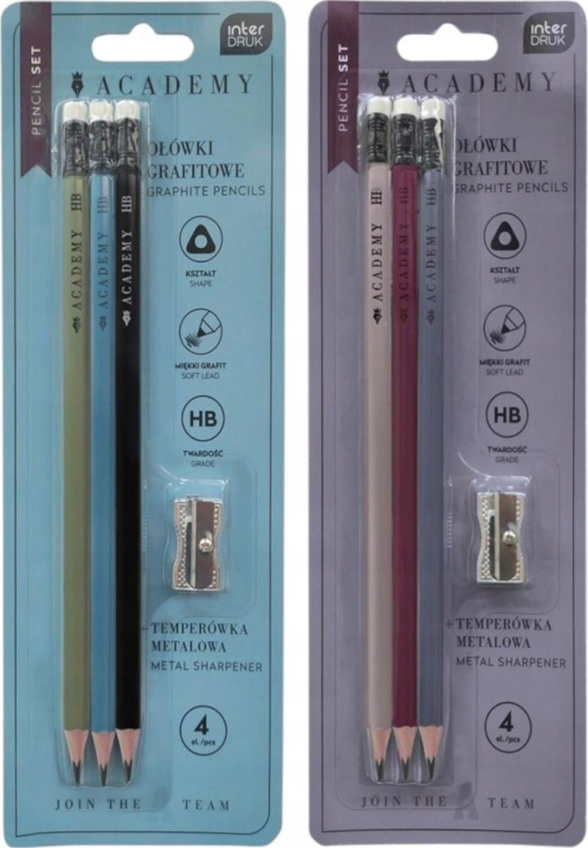 Interdruk Zestaw Piśmienniczy Academy 3 Ołówki Grafitowe + Metalowa Temperówka Gniewkowo