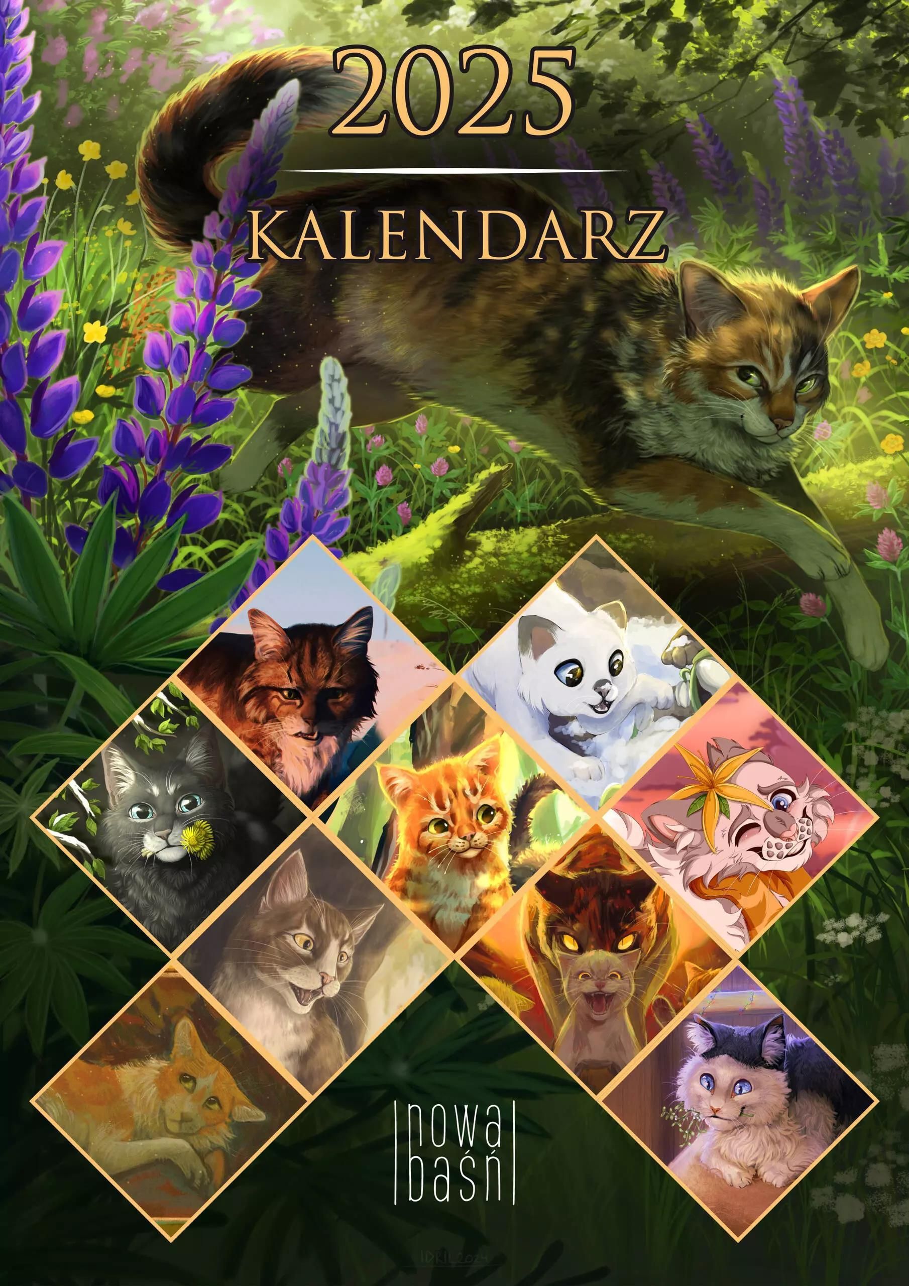 Kalendarz Wojownicy 2025 Tytuł: Kalendarz Wojownicy 2025 Wydawnictwo: Nowa Baśń Rok wydania: 2024 ISBN: 5907207768045 Kalendarz ścienny A3 na rok 2025 z motywem przewodnim serii "Wojownicy". Dziesięcioro artystów podjęło się zaprojektowania dwunastu oryginalnych ilustracji przedstawiających łącznie prawie trzydziestu kocich bohaterów! Oto oni: ✨ Zuzanna "Hedax" Skowronek ✨ Kinga "Red" Jaworska ✨ Urszula "Kordian" Przybylska ✨ Zofia "Kynoph0bia" Kledzik ✨ Aleksandra "Idril" Jabłońska ✨ Dominika "Dako" Kuc ✨ Karina "Abyst" Sauk ✨ Agnieszka "Poke" Wiśniewska ✨ Kajtek "Kajamnik" Pasieczyński ✨ Natalia "Maciejko" Budarina