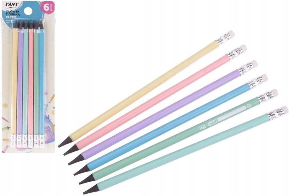 Ravi Ołówek Z Gumką Pastelowe Kolory 6Szt. Gniewkowo