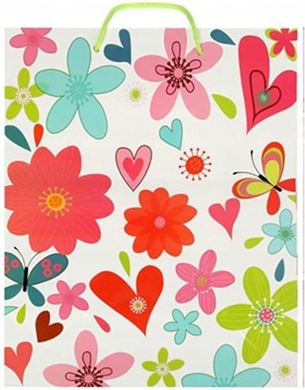 RAVI Torebka prezentowa L mix wzorów wysyłany losowo Efektowna torebka, która doskonale nadaje się do eleganckiego zapakowania prezentów okolicznościowych. Produkt jest częścią bogatej kolekcji torebek prezentowych dostępnych w wielu rozmiarach i wzorach. Wymiary: 265x325x135mm