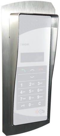 Osłona bramofonu serii DPH, wąska z ramką, ze stali nierdzewnej INOX. Montaż pod tynk, zabezpiecza kasetę przed bezpośrednim działaniem czynników atmosferycznych, mechanicznych i nadaje efektowny wygląd. Możliwe miejsca montażu: Na ścianie budynku, w elewację Wymiary części (szer x wys x gł) [mm]: - podtynkowej 93 x 227 x 25 - natynkowej 126 x 282 x 38