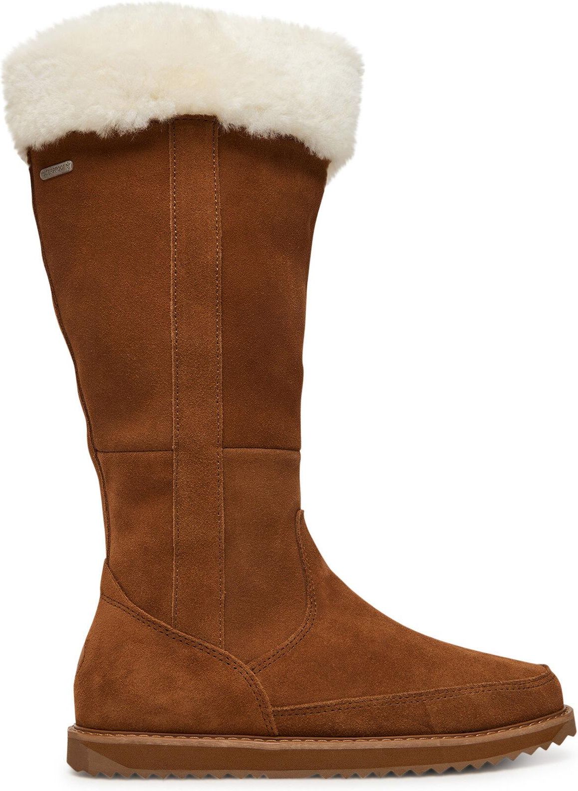 Buty Damskie Obuwie Zimowe Kozaki EMU Australia Georgi Chestnut W13218 Symbol: EM539-a Kolor: Brązowy / Orzechowy Rozmiar: 40 (26 cm) Wiecej rozmiarów i kolorów znajdziesz na pozostałych aukcjach. Opis produktu Damskie kozaki EMU Australia Georgi to idealny wybór na chłodne dni – łączą elegancki wygląd z doskonałą ochroną przed zimnem i wilgocią. Wysoka cholewka wykonana została z naturalnej skóry zamszowej, która jest wodoodporna i odporna na zabrudzenia, zachowując jednocześnie miękkość oraz elastyczność. Wnętrze butów wyściełane zostało naturalną, owczą wełną z Australii, która gwarantuje doskonałą izolację cieplną i komfort noszenia w każdych warunkach pogodowych. Odsłonięty mankiet z kożucha nadaje całości przytulny, zimowy charakter i podkreśla wysoką jakość wykonania obuwia. Kozaki posiadają prosty, minimalistyczny design, który pasuje zarówno do casualowych, jak i bardziej eleganckich stylizacji. Trwała gumowa podeszwa zapewnia przyczepność i stabilność, a wymienna wkładka umożliwia indywidualne dopasowanie obuwia do stopy. EMU Australia Georgi to stylowe, funkcjonalne i niezwykle ciepłe kozaki, które stanowią niezastąpiony element zimowej garderoby każdej kobiety. Galeria zdjęć