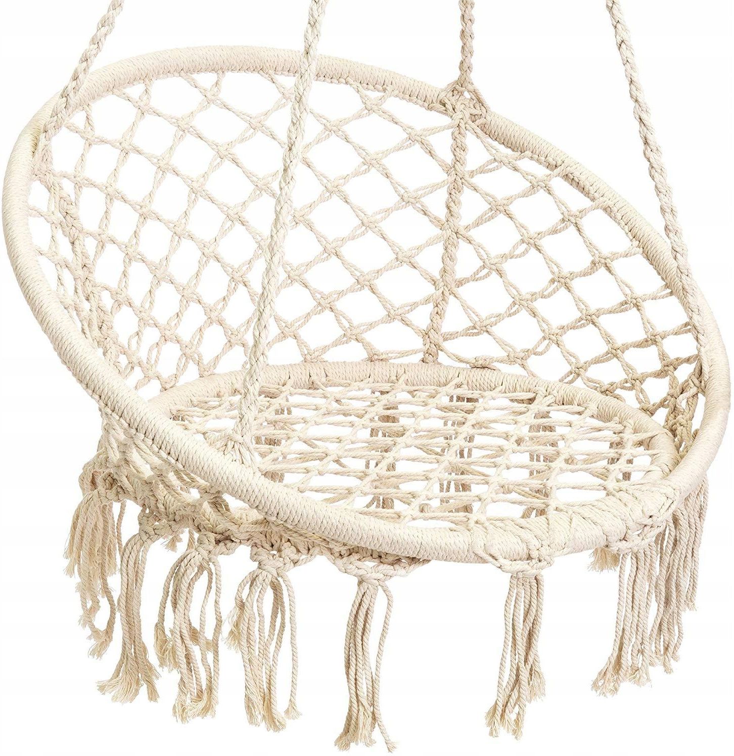Springos Huśtawka Wisząca Pleciona Fotel Boho 80cm Ecru Gniewkowo