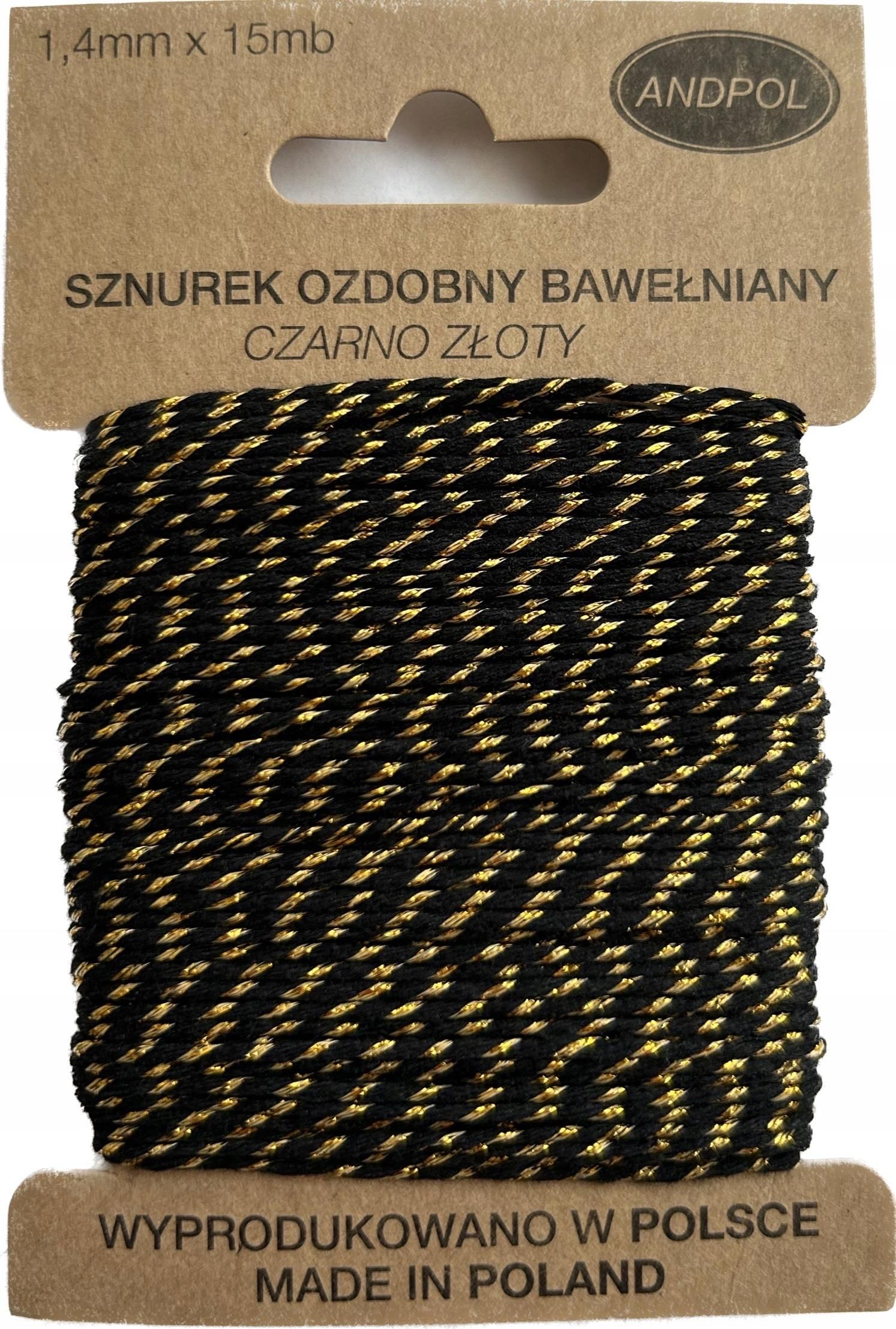 Sznurek Ozdobny Prezentowy Czarno Złoty 15Mb Gniewkowo