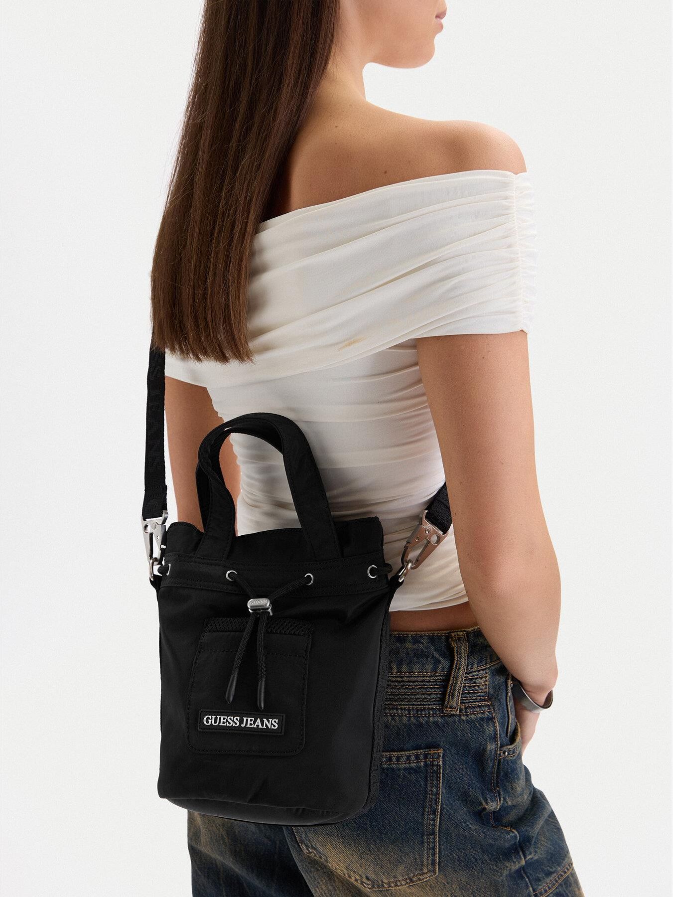 Torebka worek od Guess Jeans to połączenie nowoczesnego designu i praktyczności, które zachwyci każdą kobietę. Wykonana z wysokiej jakości materiału tekstylnego, charakteryzuje się twardą konstrukcją, zapewniającą trwałość i stylowy wygląd. Jej kompaktowy rozmiar sprawia, że doskonale sprawdzi się na codzienne wyjścia, pomieszcząc najpotrzebniejsze drobiazgi. To wyjątkowy dodatek, który podkreśli charakter każdej Twojej stylizacji. Postaw na modny wygląd i wybierz torebkę, która przyciąga spojrzenia i zachwyca jakością wykonania!