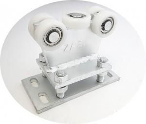 "Wózek do bram R-5T-80, stały z regulacją wysokościŚrednica rolek: 68,5mmTyp rolek: 5 x poliamidowaProfil: 80x80x5Dopuszczalne obciążenie: 500kg"