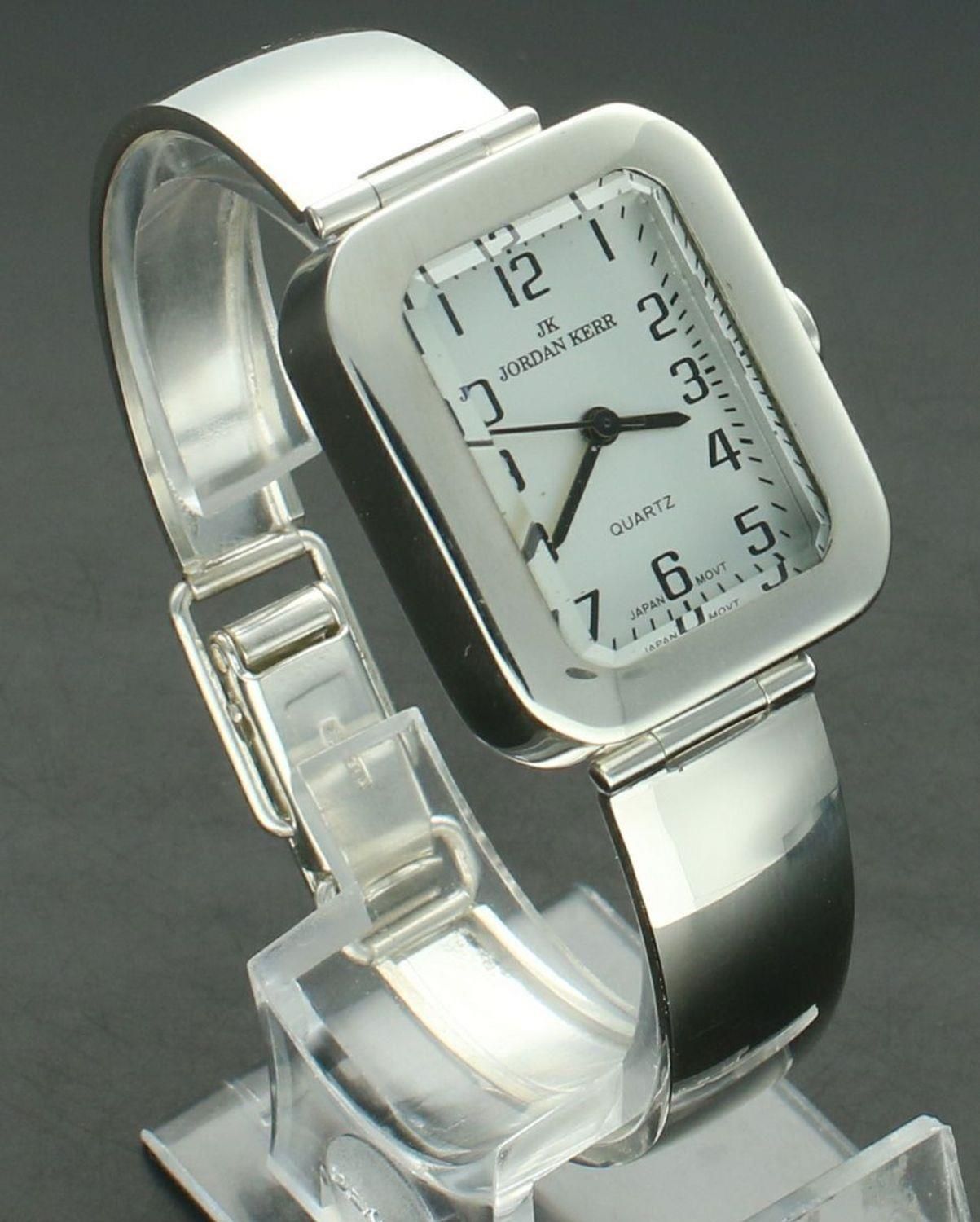 Srebrny zegarek damski Jordan Kerr New AG 925 DIA-ZEG-12882-925. Mechanizm zegarka: Zegarek damski srebrny sztywna bransoleta DIA-ZEG-12882-925 wyposażony jest w kwarcowy mechanizm, zasilany za pomocą baterii. Posiada bardzo wysoką dokładność mierzenia czasu +/- 10 sekund w przeciągu 30 dni. W mechanizmie kwarcowym, elektrycznie regulowane drgania generowane są przez syntetyczny kryształ kwarcu. Precyzyjna kontrola częstotliwości drgań sprawia, ze zegarki z mechanizmami kwarcowymi są wyjątkowo dokładne. Energia potrzebna do działania i kontroli układu pochodzi z baterii. Koperta zegarka: Mechanizm japoński mieści się w srebrnej kopercie w prostokątnym kształcie wykonanej z wysokiej jakości srebrna 925. Zegarki te polecane są osobom ze skłonnościami do alergii. Wartość tego modelu z pewnością utrzyma się na wysokim poziomie. Szkło zegarka: Zegarek wyposażony w szkło mineralne ( 5 stopień w skali Mohsa) - najczęściej spotykane, bardzo przejrzyste, czyste, cienkie, elastyczne i odporne na pęknięcia. Tarcza zegarka srebrnego: Tarcza zegarka w srebrnym kolorze z srebrnymi indeksami. Wskazówki w tym modelu są koloru srebrnego. Bransoleta srebrna AG 925: Nietypowa bransoleta została wykonana z wysokiej jakości srebra ( próba 925). Elegancki prosty wzór przy bransolecie sprawia, że zegarek wygląda ekskluzywnie i ponadczasowo. Bransoleta z regulacją. Zegarek pasuje na nadgarstek o rozmiarze 17 i 18 cm. Całkowita długość zegarka to 16,5 cm, ale dzięki wygięciu bransolety i zastosowaniu efektu typu bangle. Waga srebrnego zegarka: Całkowita waga zegarka wynosi 38,00 g. NAJPIĘKNIEJSZY PREZENT DLA KOBIETY TO JEST SREBRNY CZAS! Srebrne zegarki- te szykowne czasomierze skierowane są dla osób ceniących elegancję i prestiż, a także stanowią ekskluzywny element biżuterii. Proponowane przez nasz sklep zegarki srebrne zaspokoją nawet najbardziej wyszukane gusta. Modele, które oferujemy wykonane są ręcznie, jako produkt Polski najwyższej jakości. Wszystkie damskie zegarki srebrne zakupione w naszym sklepie posiadają dwu letnią gwarancję i zapakowane są w oryginalne opakowanie.