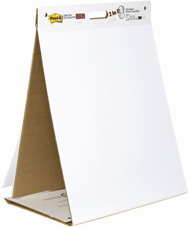 Arkusz konferencyjny na blat Post-it®/tablica suchościeralna doskonale nadaje się do zabrania ze sobą na spotkania – zawsze i wszędzie. Doskonałe do przeprowadzania burzy mózgów i rozwiązywania problemów podczas pracy zespołowej. Mniejsze arkusze łatwiej przenosić i można je szybko ustawić w razie niezaplanowanych spotkań i improwizowanych sesji burzy mózgów. Nasze arkusze na blat posiadają wysokiej jakości, jasny biały papier z recyklingu, który jest odporny na przeciekanie markerów, dzięki czemu papier się nie marnuje, a ściany nie są porysowane. Wyposażona we wbudowany stelaż z wygodną rączką do przenoszenia. Samoprzylepny podkład sprawia, że arkusze z papieru z recyklingu przyklejają się do większości ścian i można je usuwać bez śladów oraz repozycjonować. Strona suchościeralna zapewnia miejsce na tymczasowe zapisywanie pomysłów i informacji. Każdy arkusz papieru flipchart ma wymiary 58,4 × 50,8 cm. W każdym bloczku znajduje się 20 arkuszy, a w opakowaniu 6 bloczków. Rozpal potencjał swojego zespołu z narzędziami do pracy zespołowej marki Post-it®. Pobierz darmową aplikację Post-it®, aby błyskawicznie zapisywać pracę i udostępniać notatki zespołowi bez streszczeń i opóźnień. Tablice na blat Post-it® Meeting Chart doskonale nadają się do burzy mózgów, prezentacji i rozwiązywania problemów. Po prostu wyraź swoje myśli Ta wersja łączy bloki na flipchart Post-it® z powierzchnią suchościeralną do zapisywania tymczasowych notatek Przenośna tablica będzie Ci towarzyszyć na spotkaniach bez względu na ich czas i miejsce Arkusze na podkładzie samoprzylepnym przyklejają się i odklejają, trzymając się do 2 razy dłużej na większości powierzchni oraz można zmieniać ich położenie. W przeciwieństwie do standardowego papieru typu flipchart nie jest wymagane zastosowanie taśmy ani pinezki W zestawie ze stelażem na blat Składa się na płasko w celu łatwego przechowywania i posiada wygodny uchwyt do przenoszenia Wysokiej jakości papier jest odporny na przeciekanie atramentu z mazaków Przestań godzinami przepisywać notatki z burzy mózgów; pobierz bezpłatną aplikację Post-it®. Teraz możesz błyskawicznie zapisywać pracę, aby udostępniać notatki zespołowi na bieżąco i bez streszczeń