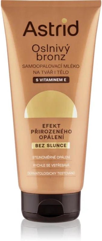 Astrid Sun, 200 ml, Samoopalacze dla kobiet, Preparat samoopalający do ciała Astrid Sun to gwarancja pięknie opalonej skóry przez cały rok. Właściwości: nadaje skórze brązowy odcień daje efekt naturalnej opalenizny nawilża i odżywia szybko się wchłania ujednolica odcień opalenizny i delikatnie tonuje łatwo się stosuje można używać na twarz i ciało łatwo się rozsmarowuje i znakomicie wchłania Skład: witamina E – odżywia, zapewnia ochronę antyoksydacyjną przed przedwczesnym starzeniem się i uszkodzeniami powodowanymi przez wolne rodniki, pomaga wygładzić zmarszczki oraz przywraca jędrność i elastyczność skóry Sposób użycia: Nanieś umiarkowaną ilość preparatu na skórę całego ciała. Dokładnie i równomiernie rozetrzyj. Po aplikacji dokładnie umyj ręce.