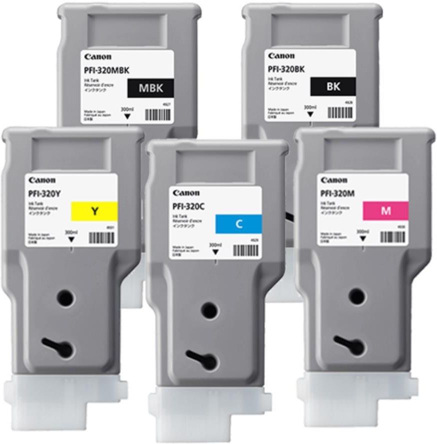 Zestaw oryginalnych tuszów Canon PFI-320 (black+matte black+cyan+yellow) oraz PFI-320 magenta Zestaw tuszów Canon. W komplecie tusze: Tusz PFI-320BK Black Tusz PFI-320MBK Matte Black Tusz PFI-320C Cyan Tusz PFI-320Y Yellow Tusz PFI-321M Magenta Stosowanie oryginalnych tuszy Canon gwarantuje …