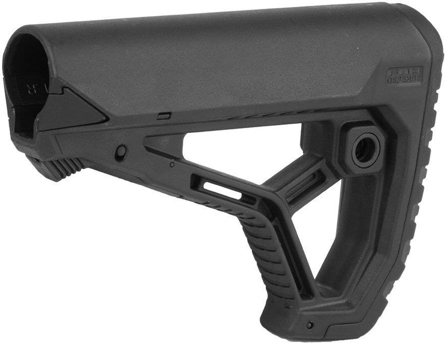 Kolba GL-CORE od firmy FAB Defense do karabinków AR15 i podobnych. Wytrzymał kolba została zrobiona ze wzmacnianego włóknem szklanym tworzywa. Używając wymiennych adapterów kolbę można zamontować na prowadnice mil-spec i commercial-spec. W celu poprawienia komfortu użytkowania kolbę wyposażono w gumową stopkę o antypoślizgowej fakturze. W kolbie zamontowano gniazdo QD, do którego można zamontować zawieszenie taktyczne. Cechy: - Wykonana z polimeru wzmacnianego włóknem szklanym - Wymienne adaptery pozwalające wykorzystywać prowadnice Mil-Spec i Commercial - Ergonomiczna gumowa stopka - Kompaktowa, wygodna baka - Brak wystających elementów mogących haczyć - Odwrócona dźwignia regulacji, zapobiegająca przypadkowemu zwolnieniu - Dwa wbudowane gniazda QD Dane techniczne: - Wymiary: 180 x 131 x 52 mm - Waga: 271 g - Materiał: Polimer wzmacniany włóknem szklanym - Kolor: czarny