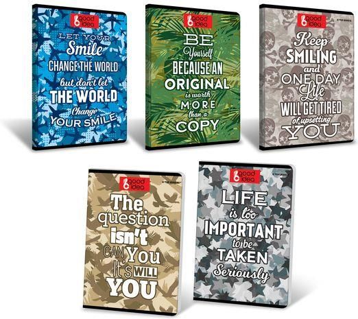 - Format: A5 - Liczba kartek: 80 - Zadruk w kratkę - Zaokrąglone rogi - Okładka pokryta lakierem UV - wzór okładki losowy