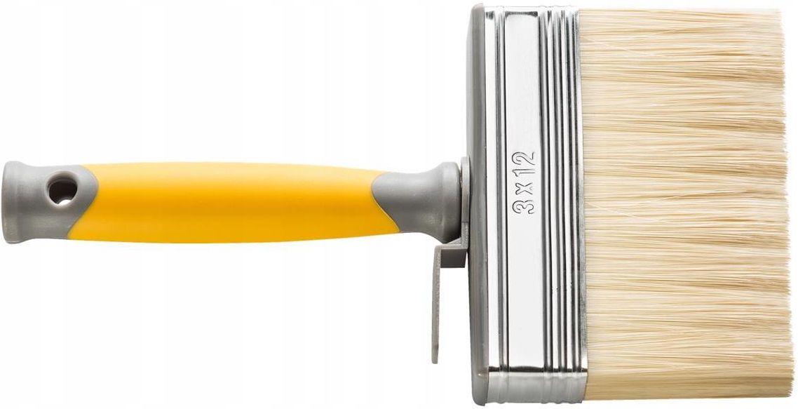 Pędzel mini ławkowiec 150x40mm *90* 2K KAEM Pędzel służy do prac malarskich na dużych, płaskich powierzchniach. Nadaje się szczególnie do pracy z farbami i lakierami na bazie rozpuszczalników. Pędzel posiada mieszankę włosia i poliestru, dzięki czemu pędzle te są trwalsze niż tradycyjne pędzle z naturalnego włosia. Rączka 2K zapewnia dobre przyleganie do dłoni. Zamontowany na rączce zaczep umożliwia zawieszenie narzędzia na brzegu pojemnika z farbą. Rodzaj trzonka: Dwukomponentowa Typ włosia: mieszanka włosia i poliestru