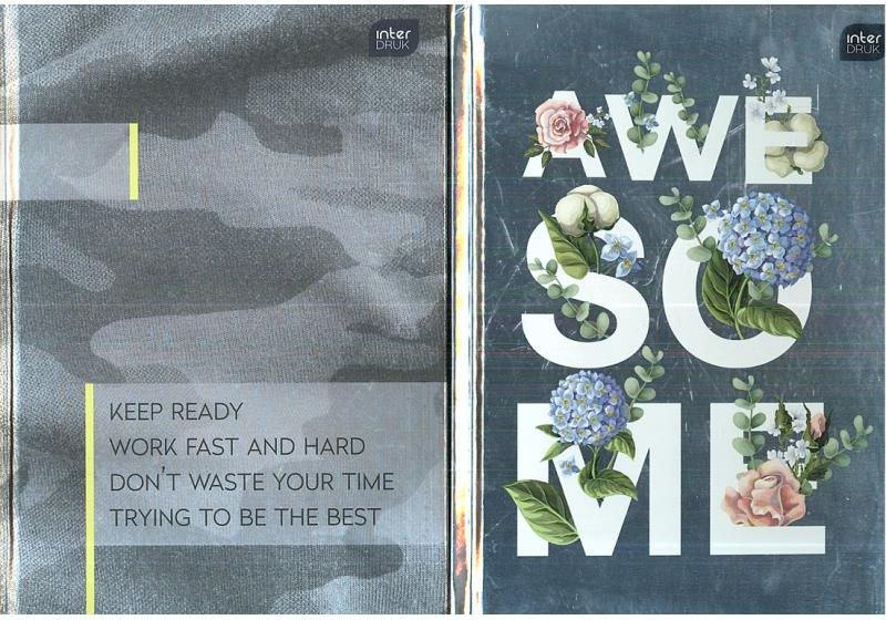 Oprawa twarda. Szyty i wzmocniony grzbiet. Mix wzorów. Brulion A5/96 kartkowy w kratkę.