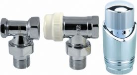 Komplet termostatyczny kątowy: głowica chrom, zawór termostatyczny, zawór powrotny Gwarancja: 2 lata Ciśnienie [MPa]: 1 Rozmiar [cal]: 1/2" Zakres regulacji temp. [°C]: 6-28 Zastosowanie: do podłączenia grzejników w instalacji c.o. wykonanej z rur stalowych. Max. temp: +110°C bezobsługowa eksploatacja nie wymaga konserwacji