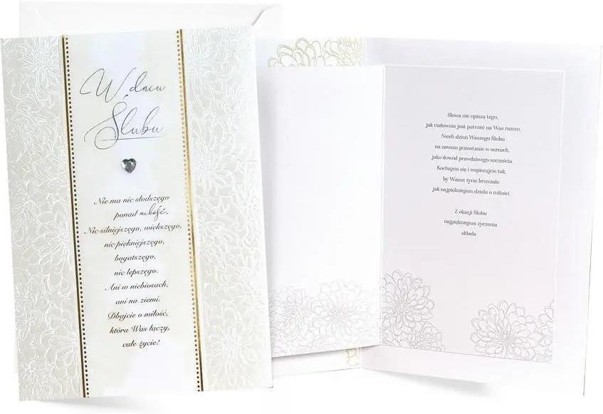 Kartki z serii Primus, to kartki najwyższej jakości, pięknie zdobione m. in złotą lub srebrną folią, tłoczeniami, czy wycinkami laserowymi.Idealne na najważniejsze okazje w życiu, takie jak chrzest, komunia, ślub.W środku każdej kartki znajdują się dobrane do okazji życzenia, a do kartki dołączona jest dopasowana koperta.Cechy szczególne: wielkość: niestandardowa, prostokątna, kwadratowa, zdobienia: dekoracje ze złotej folii, doklejane koraliki, tłoczenia koperta: dopasowana w komplecie, wnętrze kartki: życzenia w środku, okazja: Ślub TYTUŁ KARNET PRIMUS ŚLUB WYDAWCA KUKARTKA OPRAWA OPRAWA FOLIA EAN 5901924499015 Znajdź podobne według klucza: KUKARTKA KARNET ŚLUB (637730)
