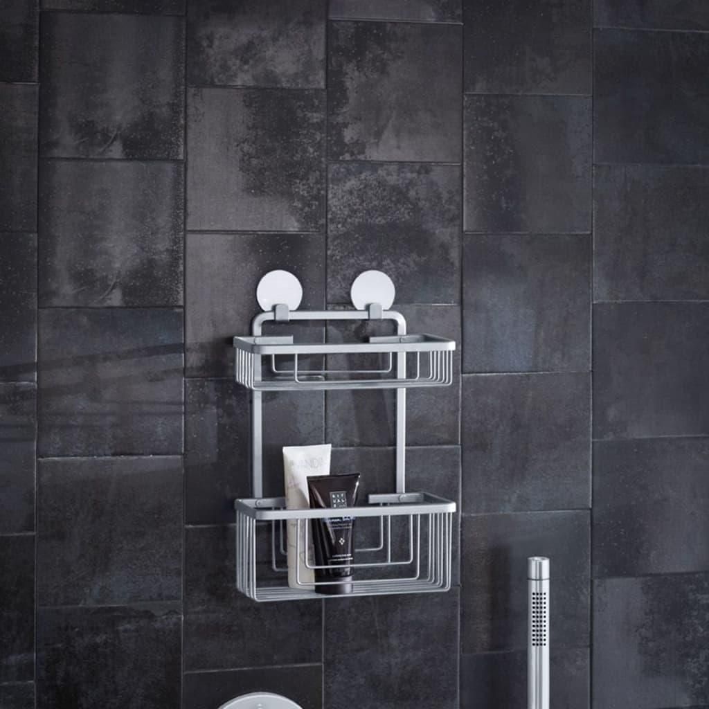 Kleine Wolke Podwójna półka prysznicowa Rocco, prostokątna, aluminium Kleine Wolke Kolor: Array Rozmiar: Array Chcesz mieć pod ręką półkę na akcesoria pod prysznic i do kąpieli bez konieczności niszczenia ścian łazienki dziurami? W takim razie ta aluminiowa, dwupoziomowa, prostokątna półka …