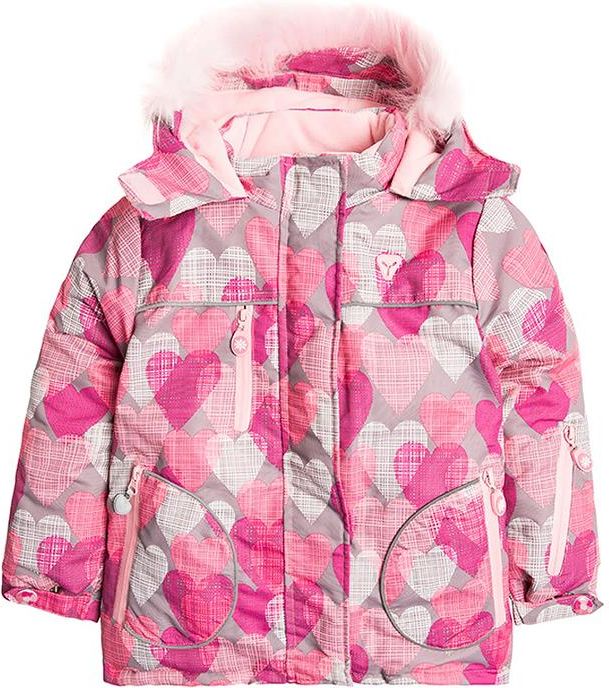 kurtka narciarska dla dziewczynki wodoodporny. wiatroszczelny i oddychający materiał zewnętrzny - 100% poliester (WP 2000, MVP 800) podszewka z polaru - 100% poliester wypełnienie - 100% poliester (220 gr) wzór w serca zapięcie na zamek błyskawiczny osłonięty dodatkową listwą zamykaną na rzepy zabezpieczenie zamka przy szyi doszyty kaptur z odpinanym, sztucznym futerkiem kieszenie zewnętrzne zamykane na suwaki wewnętrzna kieszeń zamykana na rzep wewnętrzny ściągacz (pas śniegowy) na zatrzaski wewnętrzna gumka do dodatkowej regulacji wewnątrz rękawów wszyte mankiety z otworem na kciuk elementy odblaskowe otwór na słuchawki pielęgnacja: prać z podobnymi kolorami w temperaturze do 40° C. Prać i prasować po lewej stronie.
