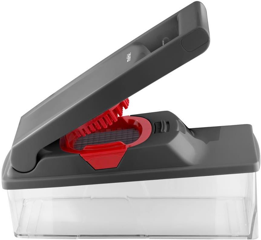 KRAJALNICA WARZYW owoców z pojemnikiem plastikowa Specyfikacja techniczna Id produktu: 94205 Materiał: tworzywo sztuczne Kolor: grafitowy Długość: 27,5 cm Szerokość całkowita: 11,0 cm Wysokość całkowita: 16,5 cm Symbol producenta: mo-25229 Pojemność: 1,5 l -------------------------------------------- Istotne informacje 3 wymienne ostrza: - paski o szerokości 0,6 cm - słupki o wymiarach 0,6 x 0,6 cm - słupki o wymiarach 0,9 x 0,9 cm Zawartość dodatkowa 2 x grzebyk do czyszczenia -------------------------------------------- Możliwość stosowania