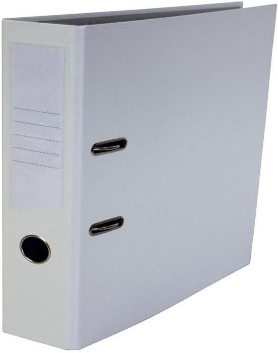 - wykonany z twardej, 2 mm tektury, - oklejka kolorowa, pokryta folią polipropylenową, - wyklejka papierowa, - mechanizm dźwigniowy z dociskiem, - grzbiet o szerokości 75 mm, - oczko grzbietowe, - metalowe okucia dolnej krawędzi, - okucia owalne, - wymienna etykieta do opisu.