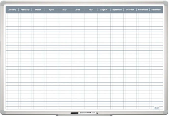 Planer roczny o powierzchni suchościeralno-magnetycznej. – tablica planer do powieszenia na ścianie – powierzchnia suchościeralna i magnetyczna planera umożliwia wykonywanie notatek markerem suchościeralnym oraz użycie magnesów. – rama z profilu aluminiowego anodowana na kolor srebrny – narożniki plastikowe w kolorze szarym – w komplecie: półka na markery, marker i 3 magnesy oraz elementy mocujące – gwarancja 2 lata, 10 lat na powierzchnię lakierowaną