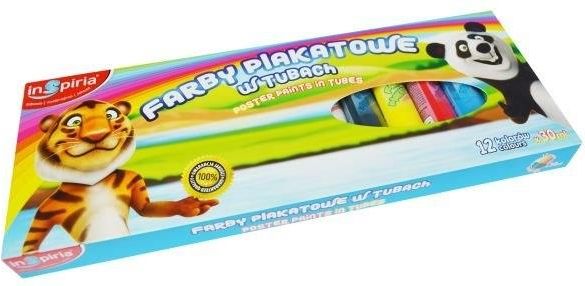 Farby plakatowe w tubach 12 kolorów 30ml InSpiria __________________________________________________________________ wygodne i szybkie w użyciu nie wymagają rozcieńczenia wodą łatwo się rozprowadzają i doskonale kryją malowaną powierzchnię do malowania na papierze, kartonie, drewnie żywe i …