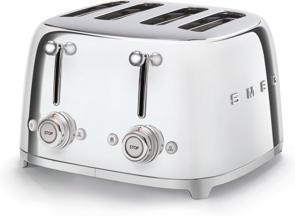 Toster na 4 kromki SMEG TSF03SSEU Stal 50's Style Toster na 4 kromki z podwójnym panelem sterowania umożliwia jednoczesne korzystanie z różnych funkcji i poziomów opiekania. To idealne rozwiązanie dla większych rodzin lub dla tych, którzy lubią przygotowywać różne rodzaje pieczywa …