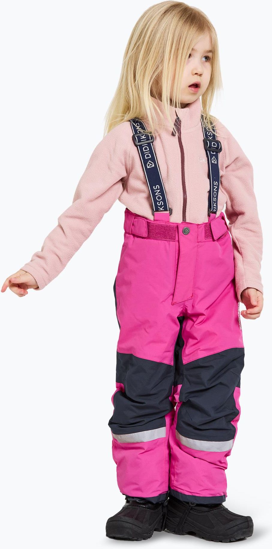 Spodnie dziewczęce Didriksons Idre Pants - plastic pink to znakomity wybór dla aktywnych dzieci w sezonie zimowym. Ten lekko ocieplony model zapewnia optymalną ochronę przed niskimi temperaturami, przy jednoczesnej dbałości o swobodę ruchu. Podwyższony poziom wodoodporności, sięgający 6 000 mm słupa wody, zapewnia komfortowe noszenie podczas opadów deszczu lub śniegu. Spodnie dziewczęce Didriksons Idre Pants - plastic pink dzięki oddychalności na poziomie 4 000 g/m²/24h zapewniają dobrą cyrkulację powietrza, eliminując efekt przegrzania podczas aktywności. Wnętrze zostało wyposażone w poliestrową ocieplinę o gęstości 120 g/m², która skutecznie izoluje ciało przed chłodem. Dodatkowo, wykończenie DWR PFC Free sprawia, że spodnie są wysoce odporne na zabrudzenia, a krople wody swobodnie po nich spływają. Spodnie dla dzieci Didriksons Idre Pants - plastic pink wyposażono w zintegrowane szelki z regulacją. Wysoki stan oraz rozpinany pas zapewniają wygodne dopasowanie. Odblaskowe detale z przodu i z tyłu zwiększają widoczność. Spodnie dziecięce Didriksons Idre Pants charakteryzują się także anatomicznie wyprofilowaną strefą kolan, która zapewnia swobodę ruchu podczas zabaw na śniegu. Możliwość regulacji obwodu nogawek na rzep oraz wewnętrzne ochraniacze przeciwśnieżne dodatkowo zwiększają funkcjonalność spodni. Funkcja "Extend size" umożliwia wydłużenie nogawek, by spodnie mogły służyć dłużej. Spodnie Didriksons Idre Pants - plastic pink - najważniejsze cechy:Lekko ocieplony model o podwyższonej odporności na wodę;Wodoodporność na poziomie 6 000 mm słupa wody;Oddychalność wynosząca 4 000 g/m²/24h;Poliestrowa ocieplina 120 g/m²;Wykończenie DWR PFC Free;Podklejone szwy;Materiał główny i podszewka to lekki i wytrzymały poliamid;Zintegrowane szelki z regulacją;Wysoki stan;Rozpinany pas;Odblaskowe detale z przodu i z tyłu;Anatomicznie wyprofilowana strefa kolan;Obwód nogawek regulowany na rzep;Wewnętrzne ochraniacze przeciwśnieżne;Możliwość wydłużenia nogawek dzięki funkcji "Extend size";Regularny krój;Podszewka farbowana proekologiczną metodą Solution Dye;Ocieplina wykorzystuje włókna z recyklingu.