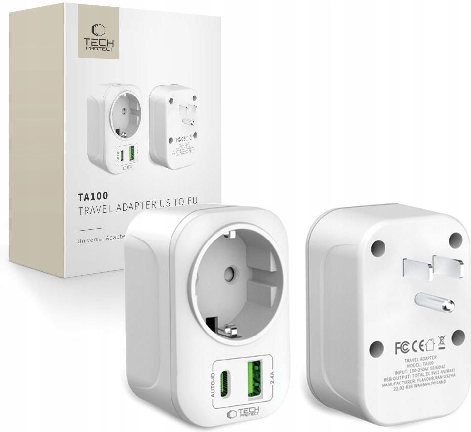 Tech-protect TA100 Travel Adapter Us To Eu White Gniezno