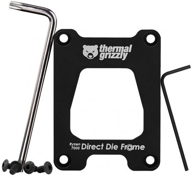 AMD Ryzen 7000 Direct Die Frame to ramka montażowa umożliwiająca instalację procesorów Ryzen 7000 oraz 7000 X3D bez rozpraszacza ciepła (IHS). W połączeniu z ciekłym metalem, rozwiązanie to obniża temperatury nawet o 10–20°C. Ramka chroni odsłonięte chipy przed uszkodzeniami mechanicznymi oraz zapewnia właściwy docisk chłodzenia, eliminując ryzyko problemów z działaniem procesora czy modułów RAM. Wykonana z anodowanego aluminium, dostarczana jest z kompletem śrub i narzędzi montażowych. Produkt nie jest kompatybilny z Ryzen 8000G oraz Ryzen 9000, w tym wariantami X3D.