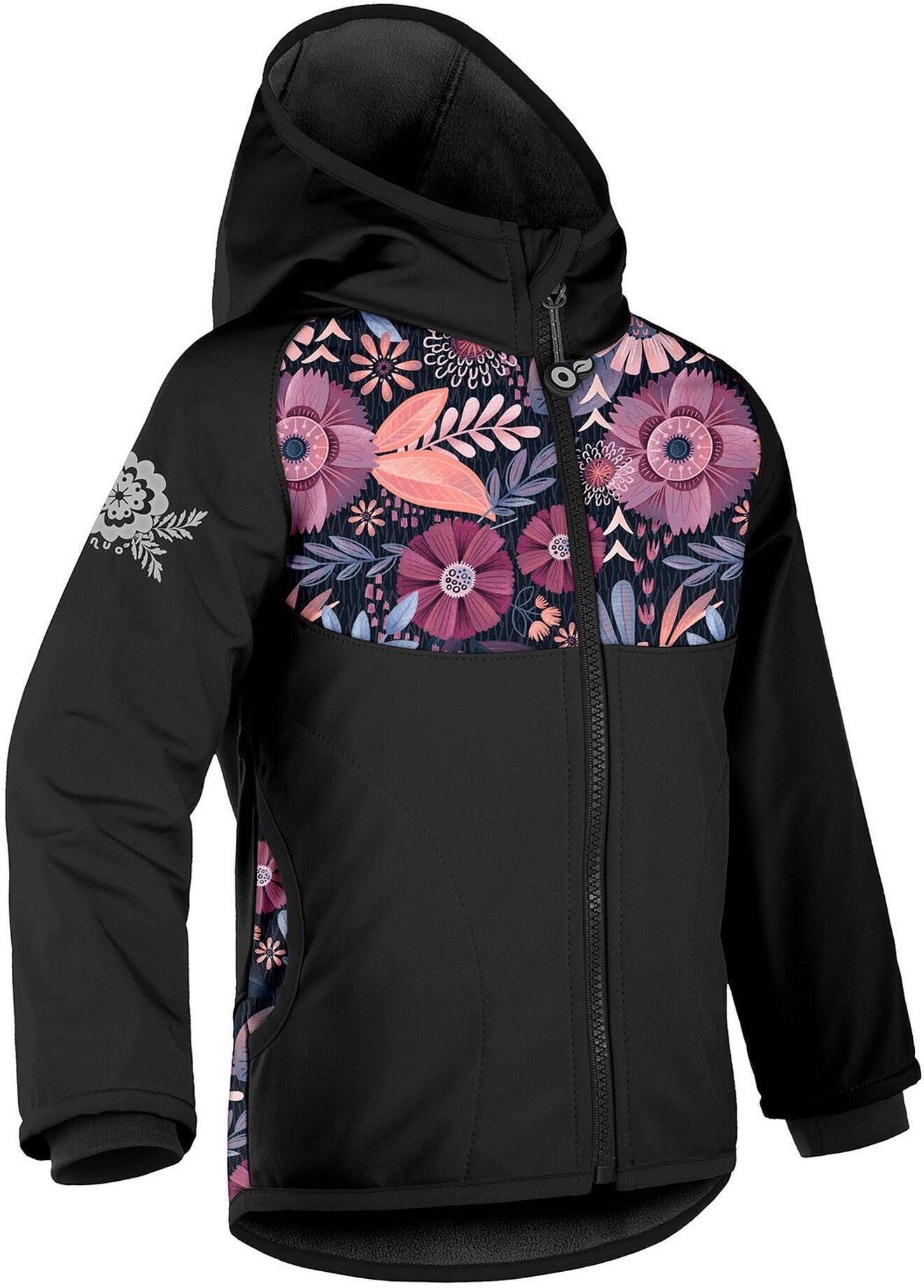 Unuo Kurtka Softshellowa Dziecięca Z Polarem Basic Czarny Magic Flowers Czarne Gniezno