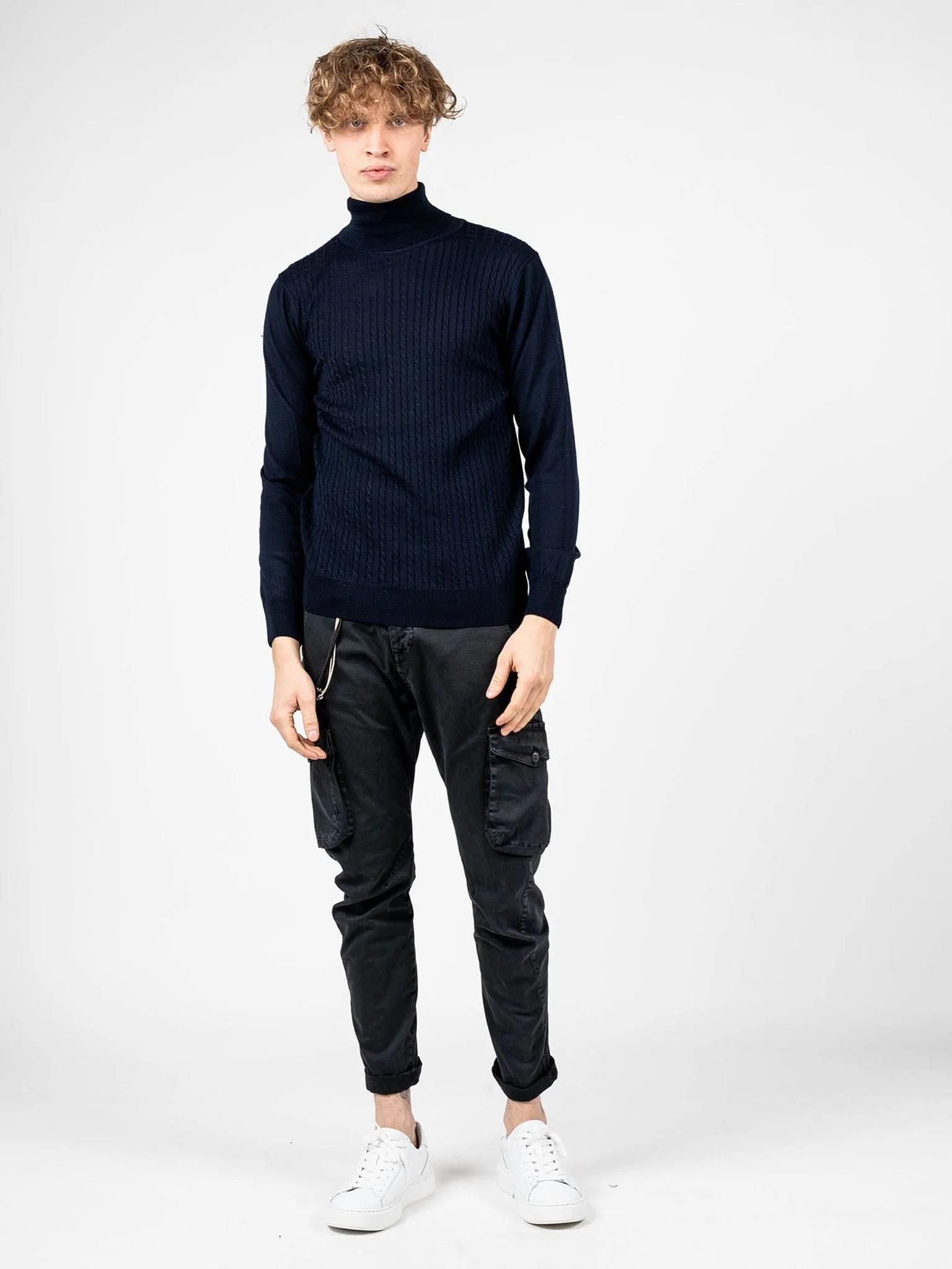 Prosty fason Z golfem Z ozdobną fakturą Dół, rękawy oraz dekolt wykończony ściągaczem Wykonany z wysokiej jakości tkaniny z dodatkiem wełny merynos Wyprodukowano we Włoszech