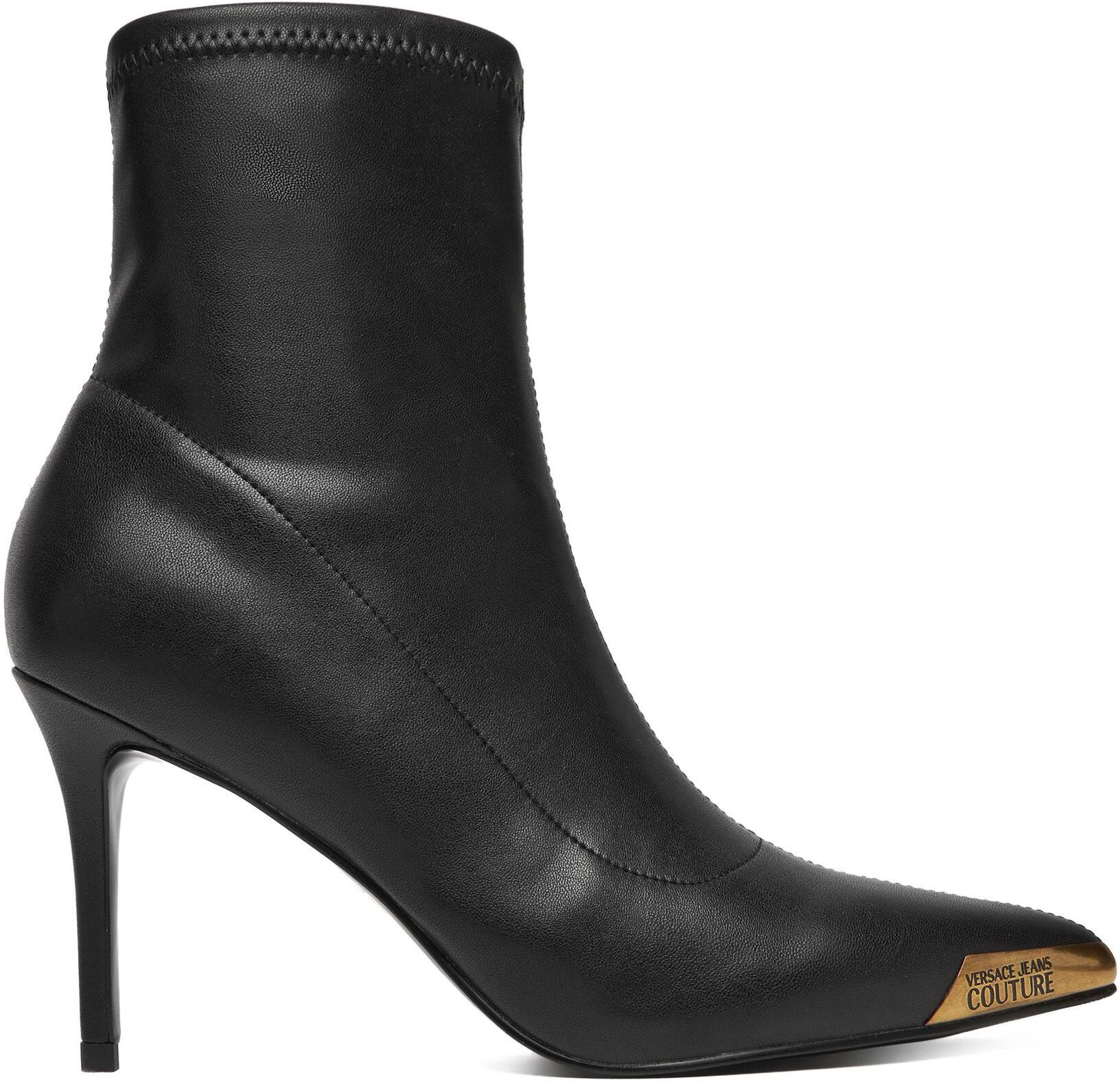 Dodaj do swojej garderoby odrobinę luksusu z damskimi botkami marki Versace Jeans Couture! Elegancki design podkreśla szpiczasty nosek, który nadaje butom wyrafinowanego charakteru. Botki zostały wykonane z imitacji skóry naturalnej, co łączy styl z łatwością pielęgnacji. Zapięcie na suwak nie tylko ułatwia zakładanie, ale także dodaje nowoczesnego akcentu. Całość dopełnia smukła szpilka, która optycznie wydłuża sylwetkę i nadaje pewności siebie. Te botki to idealny wybór dla kobiet ceniących ponadczasową elegancję w codziennych i wieczorowych stylizacjach!