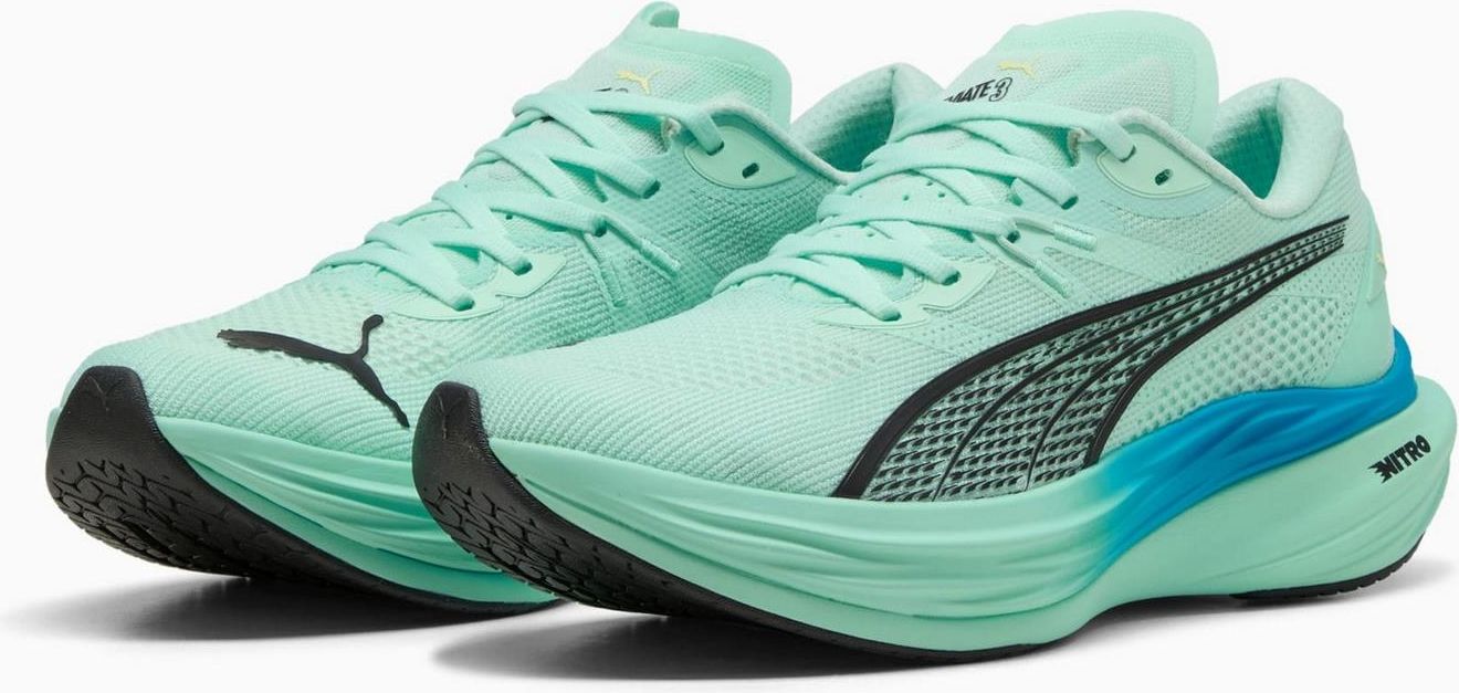 Buty do biegania Puma DEVIATE NITRO 3 Buty biegowe Deviate NITRO 3 to model, który zapewnia niezrównaną dynamikę, komfort oraz wsparcie w codziennych treningach. Wyposażone w zaawansowaną technologię PWRPLATE i piankę NITRO, te buty oferują wyjątkową responsywność i elastyczność, co sprawia, że każdy krok nabiera energii, umożliwiając szybkie zmiany tempa i dynamiczne cięcia. Pianka NITRO zapewnia doskonałą amortyzację, absorbuje wstrząsy, jednocześnie gwarantując lekkość, co czyni je idealnym wyborem na długie biegi i intensywne treningi. Technologia PWRPLATE dodaje stabilności i reaktywności, wspierając naturalny ruch stopy, co zapewnia optymalne wsparcie w trakcie biegów, zarówno na nawierzchniach asfaltowych, jak i szutrowych. Buty zostały zaprojektowane z myślą o biegaczach, którzy oczekują maksymalnej wydajności przy jednoczesnym komforcie użytkowania przez długie godziny. Deviate NITRO 3 to połączenie nowoczesnych technologii, które zmieniają sposób, w jaki biegasz – to buty stworzone do intensywnych treningów i do biegów na długich dystansach, oferujące nie tylko wsparcie, ale również wygodę i elastyczność w każdej sytuacji. Perfekcyjne dopasowanie do stopy, co zwiększa komfort, poprawia kontrolę i zapobiega otarciom, nawet podczas długich sesji biegowych. Pianka NITRO zapewnia doskonałą amortyzację, absorbuje wstrząsy i gwarantuje komfort, przy zachowaniu lekkości butów. PWRPLATE technology zapewnia dynamiczną reakcję, poprawiając efektywność każdego kroku, co wspiera naturalny ruch stopy. Wysoka responsywność butów, zapewniająca szybkie przejścia między różnymi prędkościami i łatwe zmiany tempa podczas biegu.