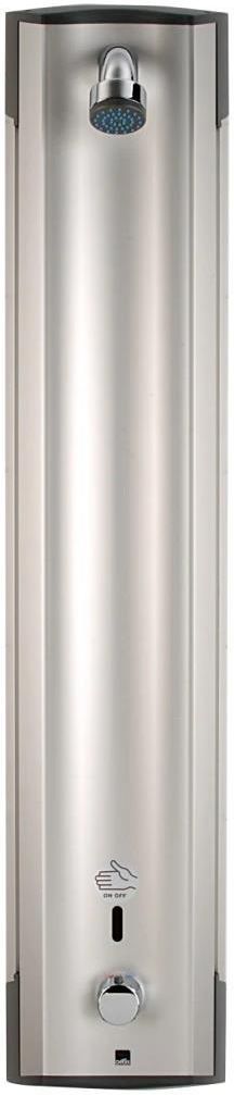 ELECTRA Panel prysznicowy ???? Bezdotykowy panel prysznicowy z termostatem. Panel zasilany jest 12 V prądem elektrycznym z oddzielnego transformatora (np. Magistrala Oras nr 199501 lub 199502). Panel wykonany jest z aluminium i tworzywa sztucznego. Pojawienie się ręki w zasięgu sensora powoduje uruchomienie prysznica. Woda płynie tak długo, jak długo użytkownik przebywa pod natryskiem. Odejście spod prysznica powoduje automatyczne zamknięcie wypływu wody. Wyposażenie dodatkowe: mydelniczka (Oras nr 199880) i uchwyt (Oras nr 199881) są sprzedawane oddzielnie. Posiada: znak budowlany „B”, atest PZH, deklarację zgodności.