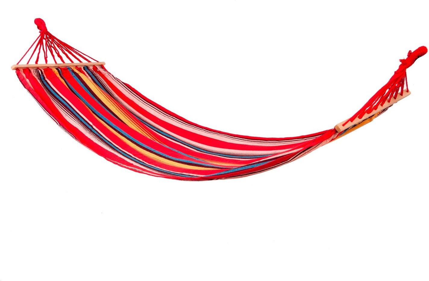 Hamak polycotton 200x80cm z łącznikiem Hamak ogrodowy jednoosobowy z drążkiem 200x80cmWysoce komfortowy hamak z drążkiem będzie ozdobą ogrodu lub tarasu w sezonie letnim. Model marki OŁER ma klasyczną konstrukcję. Miękką, wytrzymałą tkaninę typu Policotton zamocowano za pomocą sznurków do drewnianych łączników. Hamak jest wytrzymały i odporny na obciążenie w zakresie do ok. 90 kg.Model można łatwo zamocować do drzewa, elementu tarasu lub ogrodzenia dzięki solidnym uchwytom w formie oczek. Niewątpliwą zaletą produktu jest elastyczna, wytrzymała tkanina, ozdobiona barwnym, pasiastym wzorem. Hamak ogrodowy to mebel funkcjonalny, o wysokich walorach dekoracyjnych, przeznaczony do jakościowego odpoczynku. W ofercie marki dostępne są hamaki w różnych wersjach kolorystycznych.Produkt dostępny w wielu kolorach. Wydawany losowy kolor dostępny na magazynie.Parametry:•Materiał wykonania: Polycotton•Szerokość (cm): 80 cm•Długość (cm): 200 cm•Kolor dominujący: Multikolor•Maksymalna waga: 90 kg 5907795815336 Ze względu na ręczne pomiary możliwe jest niewielkie odchylenie pomiarowe. Ze względu na różne efekty oświetlenia i ustawienia ekranu kolor produktu może się nieznacznie różnić od rzeczywistego koloru.