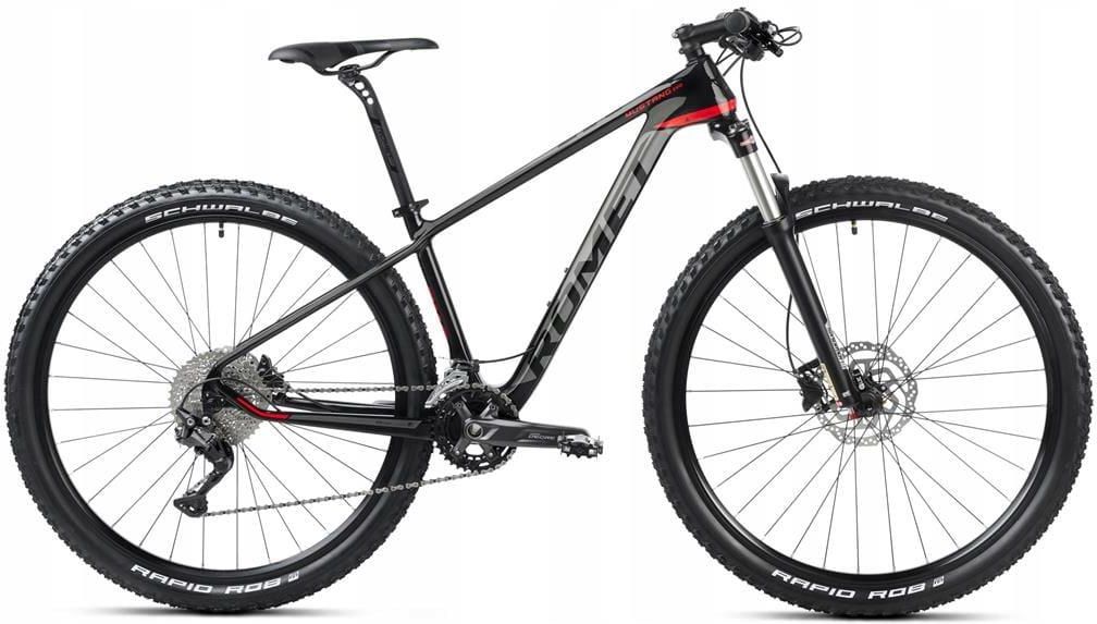 Rower górski Romet Mustang Evo 1 2024 Carbon - czarno-czerwony 19" Rozmiar ramy: 19" Kolor: czarno-czerwony Rozmiar koła: 29 cali OPIS Rower górski Romet Mustang EVO 1 na rok 2024 to doskonały wybór dla każdego entuzjasty jazdy w terenie. Został starannie zaprojektowany z myślą o mężczyznach i chłopcach, oferując wyjątkowe połączenie wytrzymałości i wydajności. Jego lekka rama wykonana z włókna węglowego zapewnia doskonałą sztywność, a przy tym minimalizuje wagę roweru do zaledwie 12,7 kg. Equipowany w przedni amortyzator Suntour XCR-32 Air, rower skutecznie absorbuję nierówności terenu, co gwarantuje komfortową jazdę. Hamulce tarczowe Shimano BL-MT200 zarówno z przodu, jak i z tyłu oferują niezawodne hamowanie, nawet w trudnych warunkach. Rower posiada 20 biegów, dzięki mechanizmowi korbowemu Shimano Deore FC-M4100 oraz manetkom Shimano Deore SL-M6000, co umożliwia płynne i precyzyjne przerzutki w każdych warunkach terenowych. W połączeniu z kasetą Shimano Deore CS-M4100 o zakresie 11-42T, pozwala to na swobodne pokonywanie zarówno stromych wzniesień, jak i długich, płaskich odcinków. Koła o średnicy 29 cali, wyposażone w opony Schwalbe Rapid Rob, zapewniają doskonałą przyczepność oraz stabilność w każdych warunkach. Aluminiowe obręcze dwukomorowe dodatkowo podnoszą wytrzymałość całej konstrukcji. Dodatkowo, rower wyposażony jest w wygodne siodło Selle Italia X-Base oraz wytrzymałe pedały FP-971, dzięki czemu jazda staje się jeszcze bardziej komfortowa. W kolorze czarno-czerwonym, Rower górski Romet Mustang EVO 1 2024 nie tylko wyróżnia się doskonałymi właściwościami jezdnymi, ale również atrakcyjnym designem, który przyciągnie uwagę każdego miłośnika sportów rowerowych. Idealny wybór dla tych, którzy szukają niezawodnego towarzysza na szlakach. DANE TECHNICZNE Dla kogo: Męski, Chłopiec Rama:: Carbon Koła:: 29 cali Widelec/amortyzator przedni:: Suntour XCR-32 Air 15x100mm,100mm, tapered Mechanizm korbowy:: Shimano Deore FC-M4100 36-26T 170mm Manetki:: Przód: Shimano Deore SL-M6000 2 biegi / Tył: Shimano Deore SL-M6000 10 biegów Przerzutka przednia:: Shimano Deore FD-M4100-E Przerzutka tylna:: Shimano Deore RD-M4120 Ilość biegów:: 20 Kaseta/wolnobieg:: Shimano Deore CS-M4100 11-42T 10 biegów Hamulce:: Przód: Shimano BL-MT200/BR-MT200 / Tył: Shimano BL-MT200/BR-MT200 Tarcze hamulcowe:: Przód: Shimano SM-RT10 centerlock 180mm / Tył: Shimano SM-RT10 centerlock 160mm Piasty:: Przód: Shimano HB-MT400 15mm/100mm / Tył: Shimano FH-MT400 12mm/142mm Obręcze/zestaw kół:: Aluminiowe dwukomorowe Opony:: Schwalbe Rapid Rob 29×2,1 Wspornik kierownicy:: Romet aluminiowy 90mm/31,8mm Kierownica:: Romet aluminiowa 760mm/31,8mm Wspornik siodła:: Romet aluminiowa 27,2mm/350mm Siodło:: Selle Italia X-Base Pedały:: FP-971 aluminiowe Waga:: 12,7 kg INDEKS: R37099conf GALERIA UWAGA ! Rower wysyłany jest w standardowej wersji pakowania STANDARDpack - rower do samodzielnego montażu i regulacji. Opakowanie posiada oryginalne zabezpieczenia producenta wzbogacone o dodatkowe wypełnienia, w miejscach najbardziej narażonych na uszkodzenie. Po rozpakowaniu rower wymaga przykręcenia przedniego koła, kierownicy, pedałów, siodełka oraz doregulowania napędu i hamulców. Ten standard proponujemy rowerzystom, którzy potrafią przygotować rower do jazdy. Przy zakupie roweru zalecamy dokupienie kluczy do montażu, które znacząco ułatwią montaż roweru. W innym przypadku proponujemy wizytę w lokalnym serwisie rowerowym lub wybór innej formy pakowania.