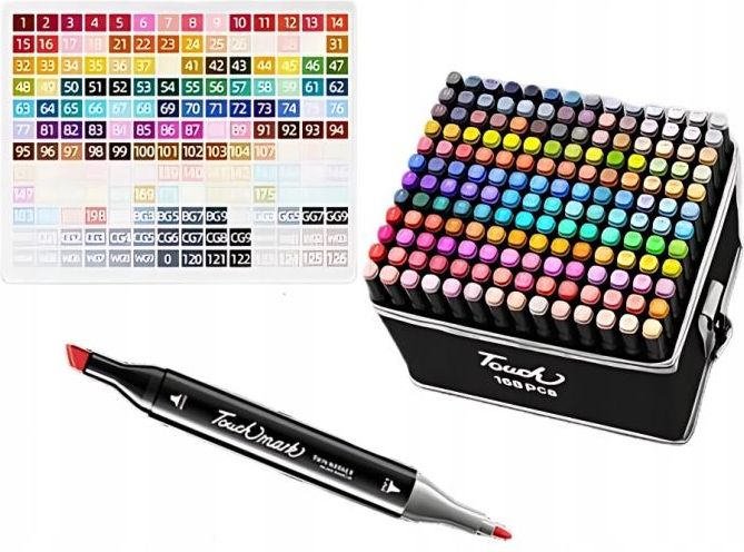 Markery 168 kolorów Uniwersalny __________________________________________________________________ Markery Alkoholowe 168 Sztuk z Dwoma Końcówkami i Torbą Stwórz piękne i trwałe prace artystyczne z naszym zestawem 168 markerów alkoholowych. Wyposażone w dwie końcówki, te markery pozwalają na …