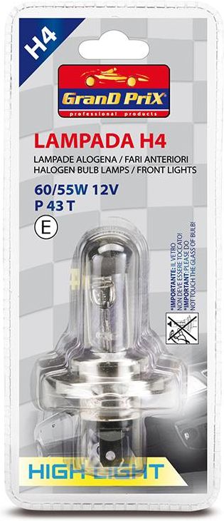 Żarówka halogenowa H4 12V 60/55W High Light – mocne oświetlenie samochodowe Trwała i wydajna żarówka halogenowa H4 High Light to niezawodne źródło światła do reflektorów samochodowych. Dzięki mocy 60/55W i napięciu 12V zapewnia intensywne, jasne i równomierne oświetlenie drogi, co znacząco poprawia komfort oraz bezpieczeństwo jazdy po zmroku i w trudnych warunkach pogodowych. Parametry techniczne: typ: H4 napięcie: 12V moc: 60/55W przeznaczenie: reflektory samochodowe Zalety żarówki H4 High Light: mocne i stabilne światło, odporność na drgania i eksploatację, wysoka trwałość i niezawodność, pasuje do większości samochodów z reflektorami H4. Dzięki solidnemu wykonaniu i optymalnym parametrom, żarówka halogenowa H4 12V High Light to idealny wybór dla kierowców ceniących pewne, jasne i bezpieczne oświetlenie na drodze.