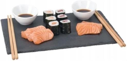 =========================== ZESTAW DO SUSHI SPICE&SOUL Opis Funkcjonalność oraz przydatność w życiu codziennym to najważniejsze kryteria, jakimi kierowaliśmy się przy doborze materiału i sposobie wykonania. Każdy dzień od nowa potwierdzi Twoją decyzję. Przekonaj się! Cechy produktu Sushi, to najpopularniejsze danie kraju kwitnącej wiśni. Jest bardzo zdrowe i pożywne, efektownie prezentuje się na stole, zachwycając przy tym różnorodnością barw. Serwowanie sushi również wymaga odpowiedniej oprawy. Prezentowany zestaw do spożywania sushi dla dwóch osób to znakomita propozycja dla wszystkich, którzy chcą, aby w ich domu zagościł azjatycki klimat. Oryginalne naczynia uświetnią każdy posiłek. Klasyczna forma i kolor sprawdzą się podczas każdej orientalnej uczty. z łupka, ceramiki i bambusa ułatwia podanie własnego sushi Doskonały prezent dla miłośników sushi. Dane techniczne Producent: Niteo 5-częścoiwy zestaw obejmujący: 1x talerz łupkowy 20x30cm, 2x miseczki okrągłe, średnica 7 x wysokość 4 cm, 2x pałeczki 24 cm Informacje dodatkowe