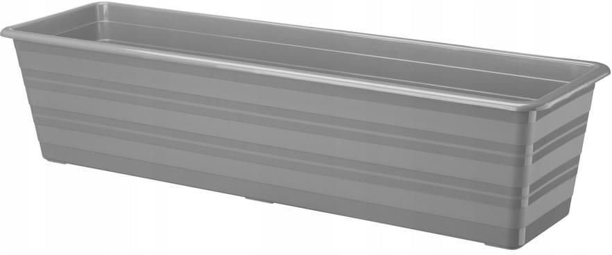 DONICZKA BALKONOWA DRACO 60cm Doniczka niezastąpiona na tarasach bądź balkonach Praktyczna skrzynia o unikalnym kształcie. Odśwież swój balkon na wiosnę! Bardzo pojemna - zmieści rośliny różnego rodzaju. Prosty i tradycyjny kształt ozdobi każdy ogród lub taras. Pasuje tym samym do różnego rodzaju aranżacji, zarówno klasycznych, jak i nowoczesnych. Skrzynka świetnie sprawdza się na balkonach, parapetach jak i na ziemi. Jest w prostokątnym kształcie i posiada delikatne tłoczenia wzdłuż ścianek. Wytrzymuje wysokie temperatury, jak i kilkunastostopniowe mrozy. Donica w kolorze siwym. Wymiary: długość góra 59,5cm długość dół 54cm szerokość góra 16,5cm szerokość dół 11,5cm wysokość 14cm