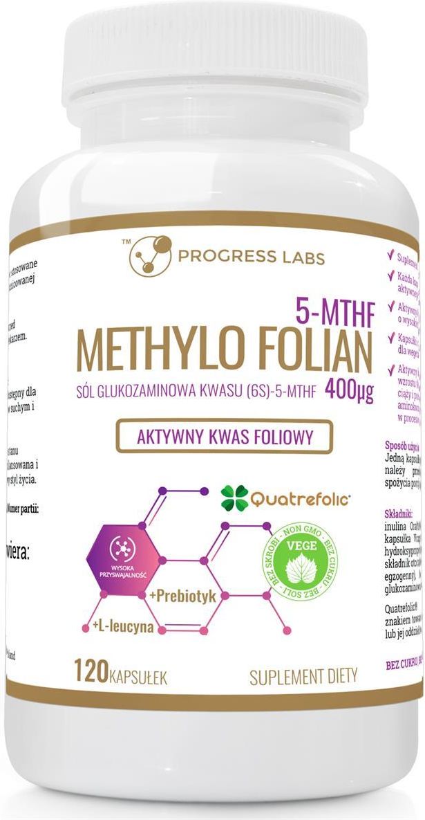 Opinie Progress Labs Kwas foliowy Methylo Folian 400µg 120kaps. Golczewo