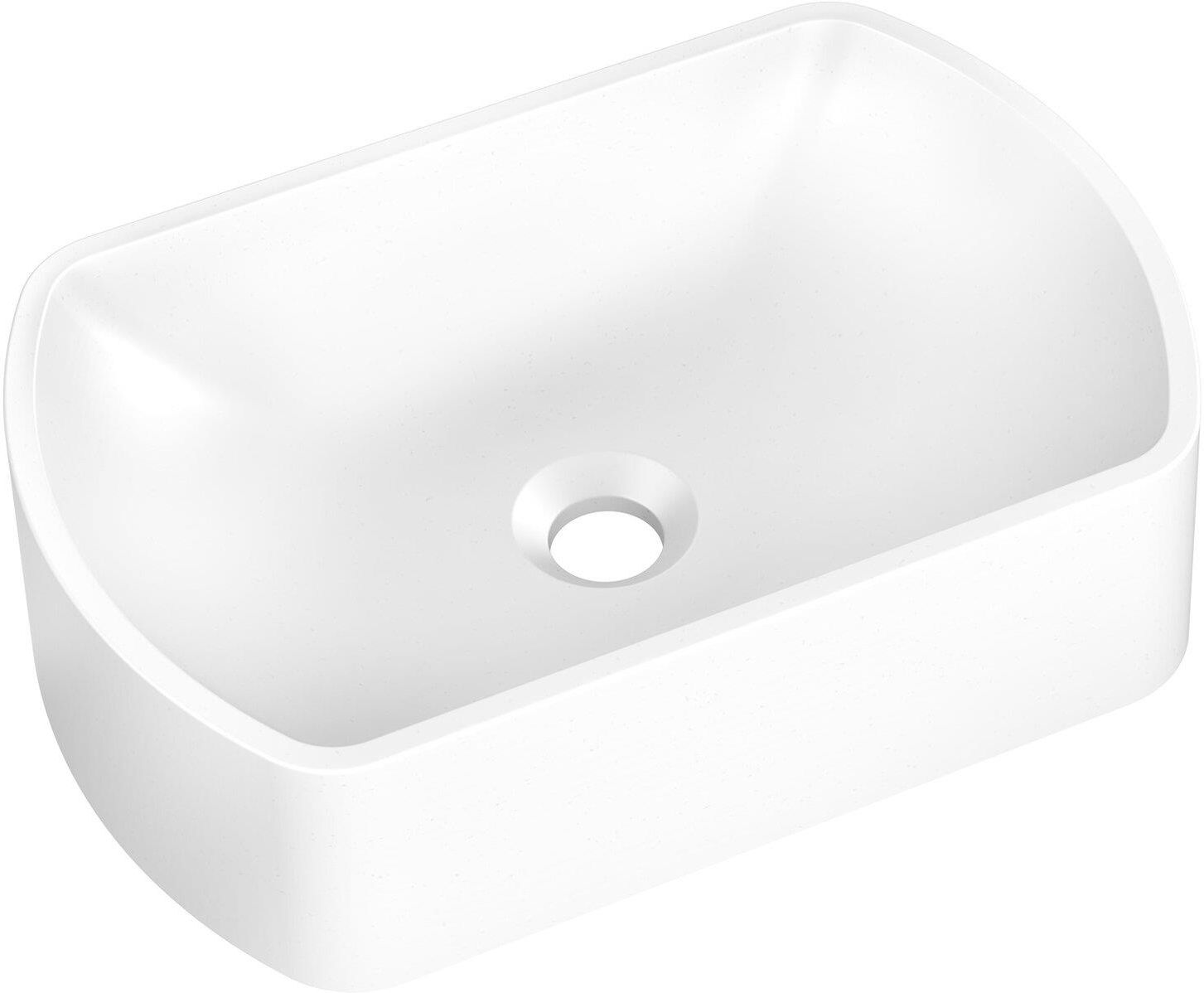 Umywalka nablatowa Maun granitowa biała 45 cmNablatowa umywalka Maun to połączenie funkcjonalności granitu z nowoczesnym designem. Axi-gran z którego wykonano umywalkę jest mieszanką premium, składającą się z precyzyjnie wyselekcjonowanych kombinacji koloryzowanego kwarcu, żywic poliestrowych i katalizatorów. Materiał jest bardzo odporny na szok termiczny oraz uszkodzenia mechaniczne jednocześnie zapewniając, że powierzchnia umywalki jest satynowa i bardzo gładka. Dodaje to produktowi ekskluzywności i sprawia, że jest łatwiejszy w utrzymaniu czystości. Ponadto sprawia to, że umywalka wykazuje większe właściwości bakterioodporne. Produkt wyprodukowany w Polsce.