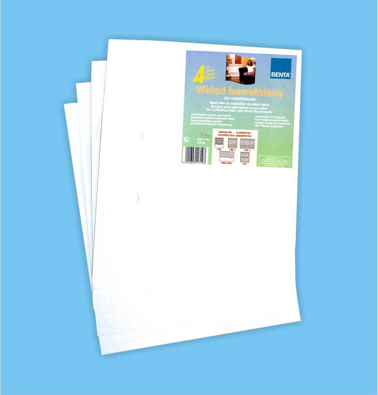 WKŁAD / FILTR 1310 DO NAWILŻACZA 942, 111 I INNYCH FIRMY METROX DAWNIEJ BENTA CECHY TOWARU Wymiary: 32,5 x 25 cm Ilość: 4 sztuki OPIS wkład do nawilżaczy powietrza, umożliwia uzyskanie wilgotności względnej powietrza 40-60 %, specjalna kubatura wkładu umożliwia bardzo wydajne parowanie, należy wymieniać co 4 - 6 tygodni, pasuje do nawilżaczy: nr 110, 111, 140, 141, 142, 143, 942, 943, ilość w opakowaniu: 4 sztuki, kolor: biały, materiał: PE-LD, UWAGI Aktualnie wkłady są produkowane z czystej celulozy. Wcześniej znajdowały się w nich niewielkie ilości włókien bawełny ale zostało to zmienione przez producenta i w taki sposób uzasadnione: Materiał produkowany jest tylko i wyłącznie z czystych włókien celulozowych i w warunkach produkcji dla papierów do bezpośredniego kontaktu z żywnością oraz bibuł laboratoryjnych w związku z czym finalny produkt nie zawiera żadnych pleśni, grzybów i drobnoustrojów. W JAKIM CELU NAWILŻAMY? W sezonie grzewczym wilgotność powietrza w naszych mieszkaniach czy domach może spaść nawet do 10%, Niewłaściwy poziom wilgotności skutkuje tym, że śluzówka nosa, która chroni przed wirusami i bakteriami, staje się nadmiernie wysuszona, Nawilżacze powietrza przywracają dobre samopoczucie w ogrzewanych pomieszczeniach w czasie zimy, Optymalny poziom nawilżenia wynosi 40-55% co jest optymalną wielkością dla naszego zdrowia. DODATKOWE INFORMACJE Specjalna kapilarna struktura wkładu umożliwia bardzo wydajne parowanie. Z upływem czasu kurz z powietrza oraz kamień z wody osadzają się na wkładzie. Nie wygląda to ładnie ale nie szkodzi Państwu zdrowiu. W celu osiągnięcia optymalnej wydajności parowania, należy codziennie dolewać wodę a filtr / wkłady należy wymieniać co 4 - 6 tygodni dla zapewnienia prawidłowego działania nawilżacza. PRODUKT POLSKI Kupując polskie produkty, wspierasz polską gospodarkę i tworzysz nowe miejsca pracy!