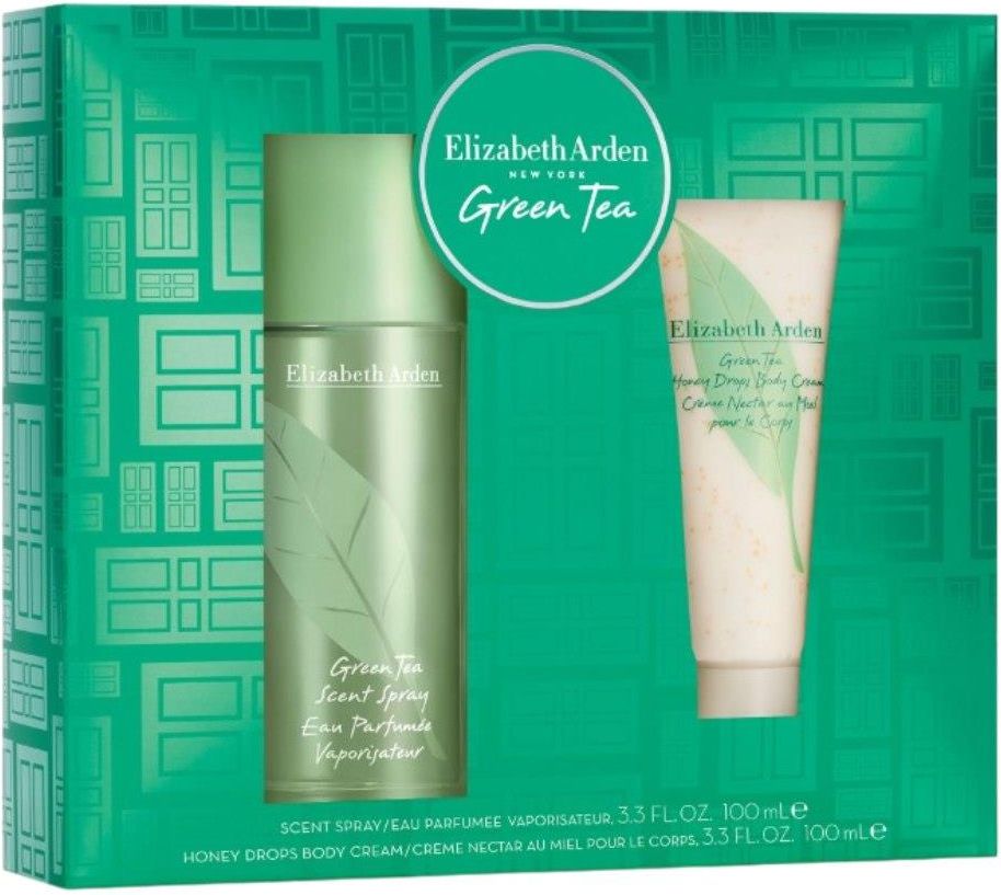 Elizabeth Arden zestaw prezentowy dla niejKuszący ZESTAW ELIZABETH ARDEN GREEN TEA to propozycja dla kobiet, która roztacza energetyzująco-orzeźwiający aromat, czerpiący inspirację z bujnej, zielonej świeżości. Kompozycja zapachowa Green Tea ma za zadanie pobudzać zmysły i rewitalizować ciało.Zapach powstał z harmonijnego połączenia naturalnych składników, tworząc zrównoważone, przyjemne i odświeżające doznania zapachowe.Charakterystyka zapachu: Energetyzujący, Orzeźwiający.Nuty zapachowe:Nuty głowy: Soczyste akordy rabarbaru, cytryny, bergamotki, skórki pomarańczy i kminku wprowadzają w kompozycję.Nuty serca: Zielona herbata, mięta, słodki jaśmin, goździk, świeży koperek i suszony seler stanowią urzekające serce zapachu.Nuty bazy: Bursztyn, mech dębowy i piżmo tworzą harmonijną i otulającą bazę.Skład zestawu:Elizabeth Arden Green Tea - Woda perfumowana 100 mlElizabeth Arden – Balsam do ciała 100 ml