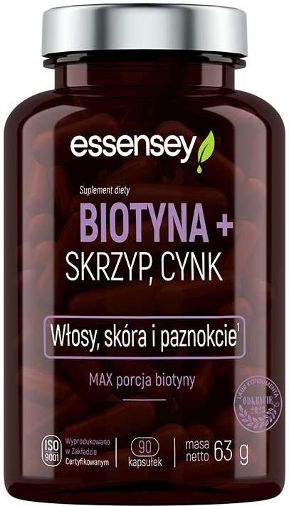 Essensey  Wsparcie Włosów Skóry Paznokci Kompleks Biotyna + Skrzyp Cynk 90Kaps   Gołdap