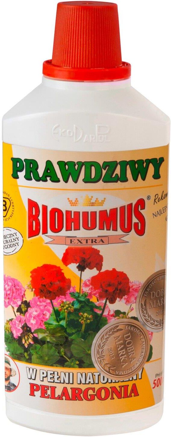 Nawóz Biohumus Extra Pelargonia 500 ml, marki Ekodarpol. Szybko przyswajalny, płynny nawóz naturalny. Znakomicie wpływa na wzrost roślin. Wzmacnia system samoobrony roślin, stymuluje powstawanie pąków i powoduje piękne wybarwienie kwiatów i liści. Bezpieczny dla ludzi i zwierząt.